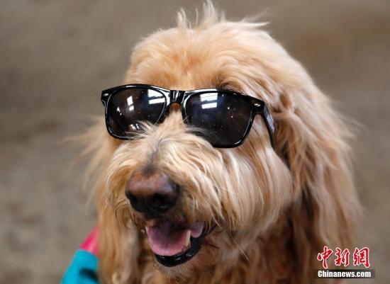 资料图:一只宠物狗戴上墨镜“扮酷”。中新社记者 刘关关 摄